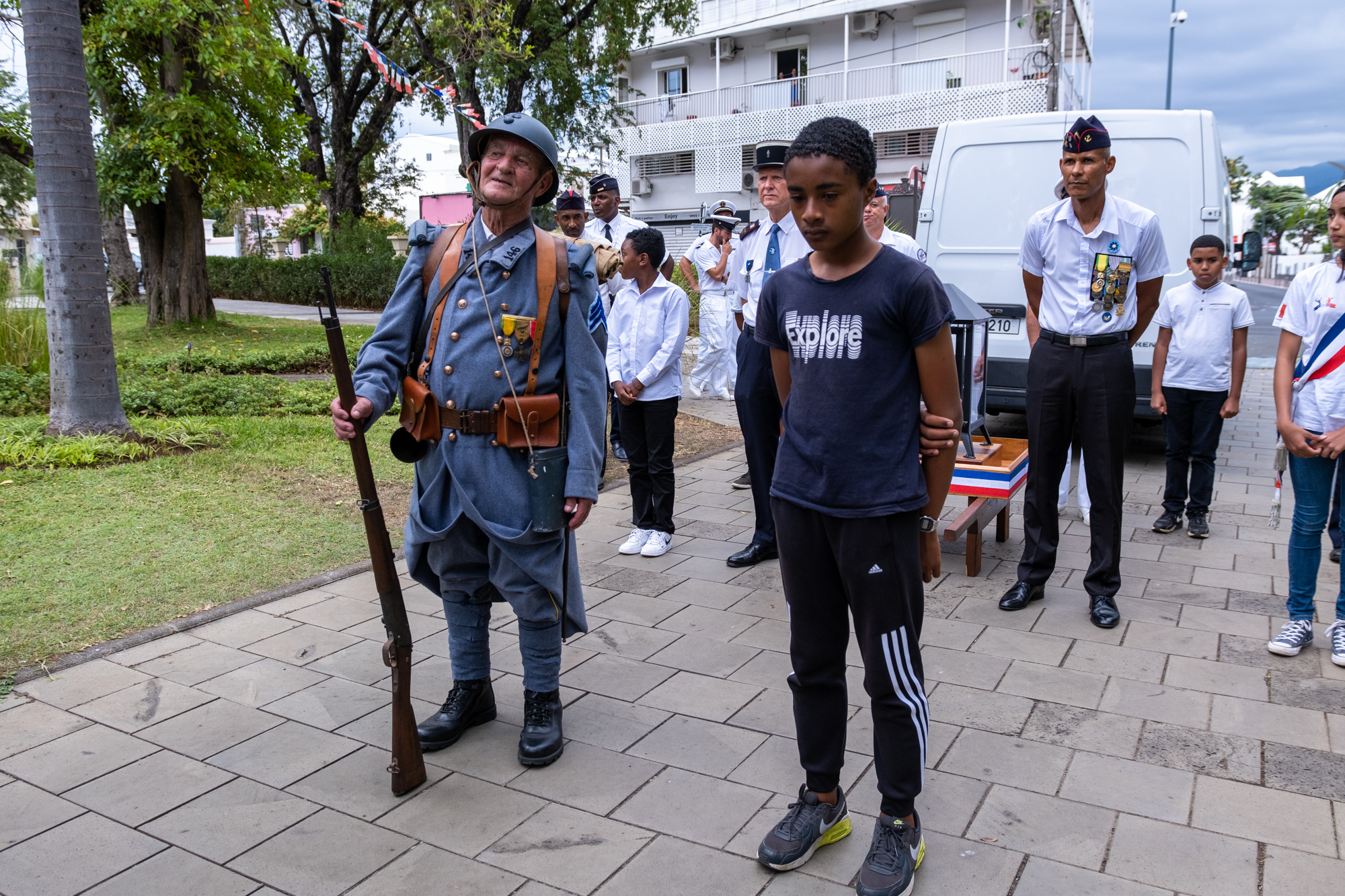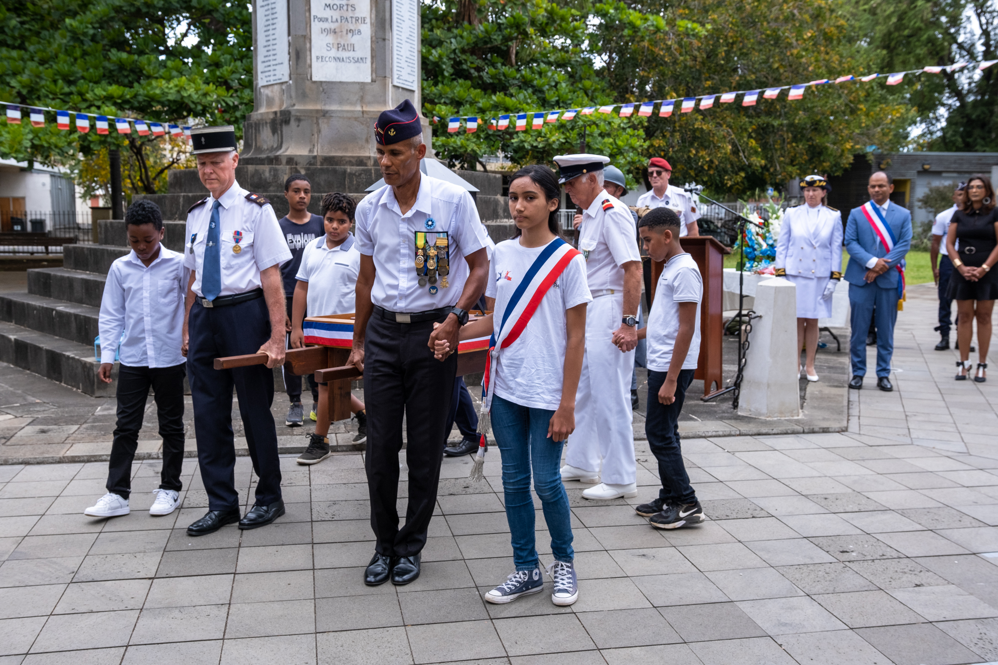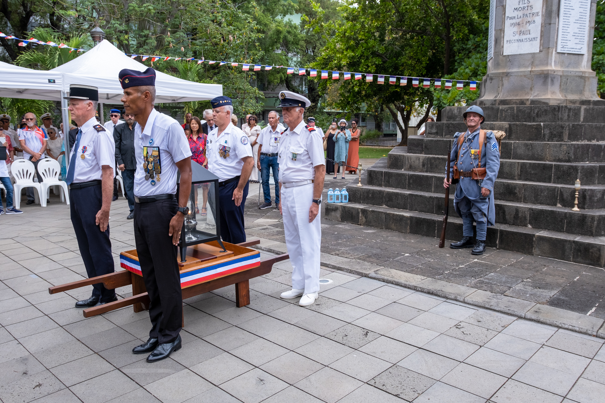 À Saint Paul, comme dans beaucoup de villes, c’est ici devant le Monument aux Morts que les familles se souviennent et honorent ceux qui ont accompli le sacrifice suprême pour que vive La France. N’oublions pas l’engagement total des Réunionnais pendant la Première Guerre Mondiale. 14 326 kréol s’engagent dans ce premier conflit mondial.