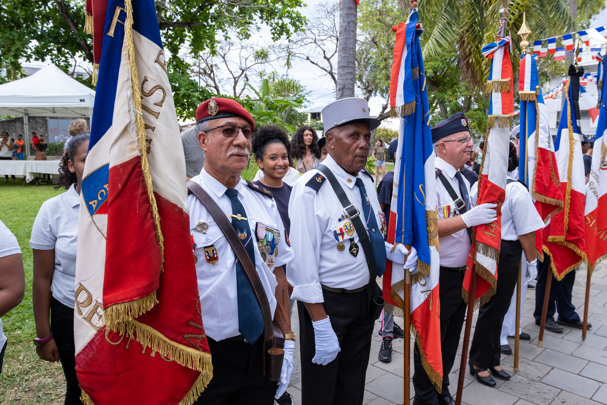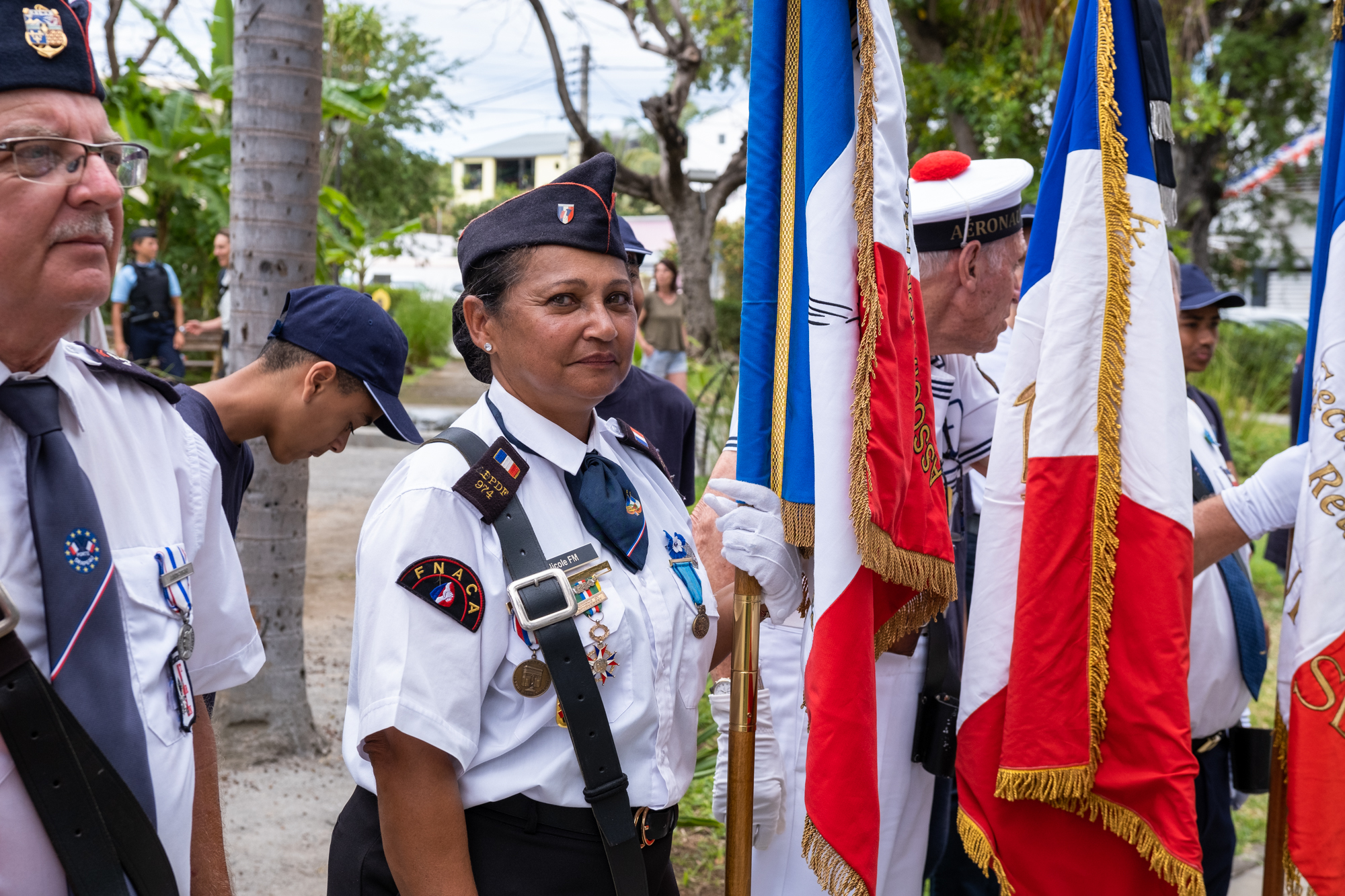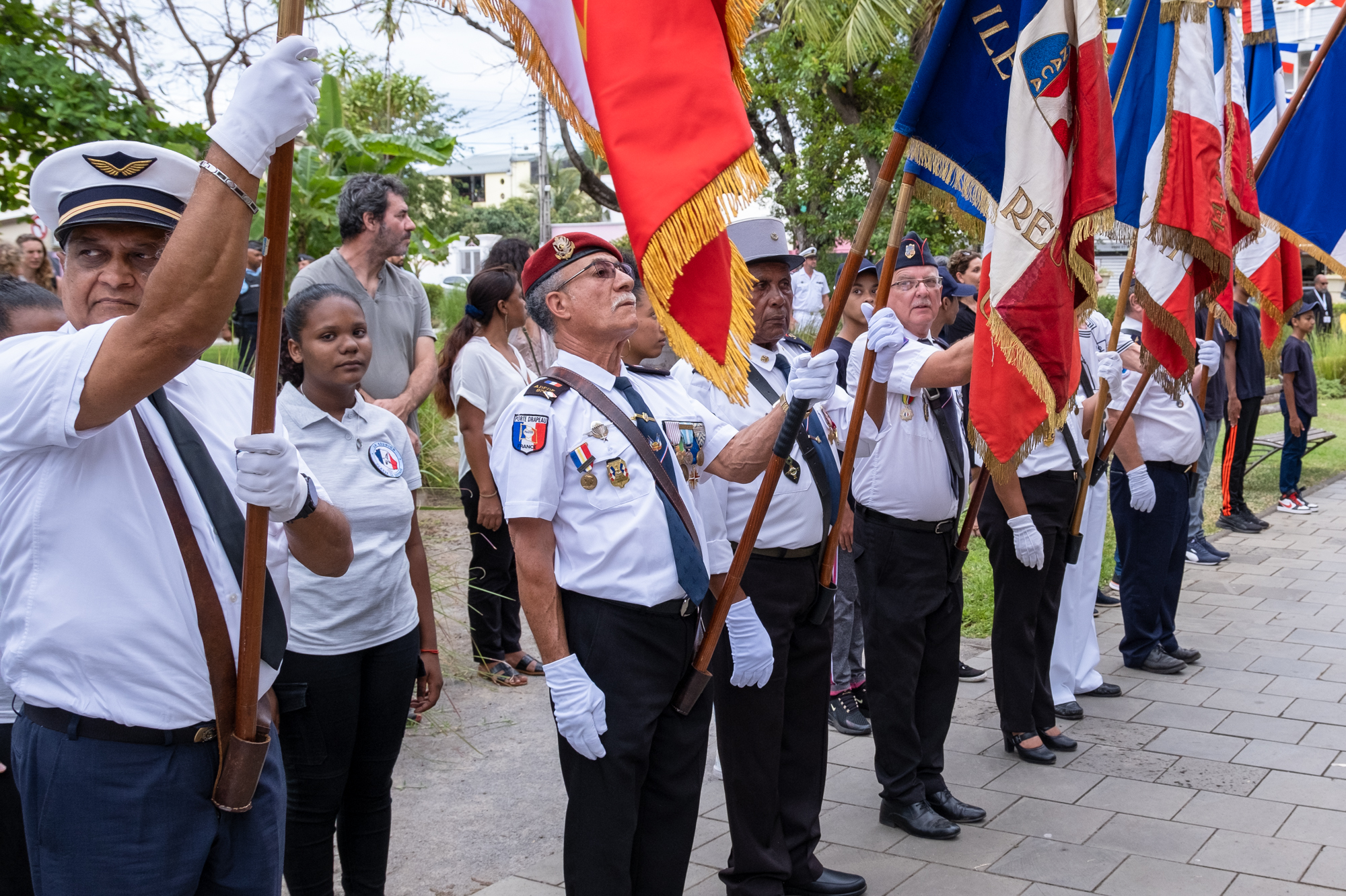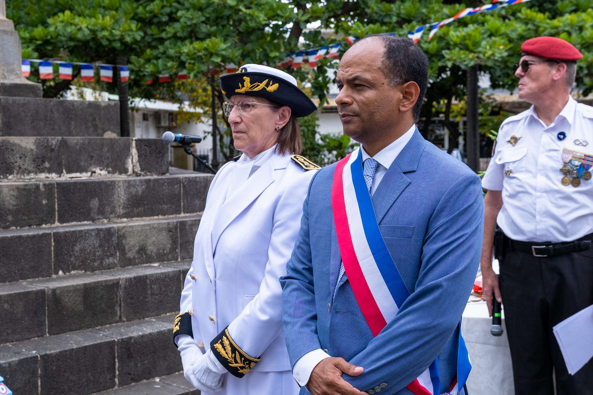 Les anciens combattants, les présidents des associations et les membres de la Société des Membres de la Légion d’Honneur de La Réunion participent aussi à ce beau moment d’unité. Le Général Yvon LUCAS, Président honoraire de la Société des Membres de la Légion d’Honneur de La Réunion et le Président de la section de la SMLH de La Réunion, Ary LANGENIER, sont présents tout comme la Sous-Préfète de Saint-Paul, Sylvie CENDRE, la Conseillère Régionale déléguée à la Santé, Laëtitia LEBRETON, la Conseillère Départementale, Jeanne HOARAU, l’Adjointe aux Affaires Militaires à Saint-Paul, Hélène ROUGEAU, et les élu·es du Conseil Municipal.
