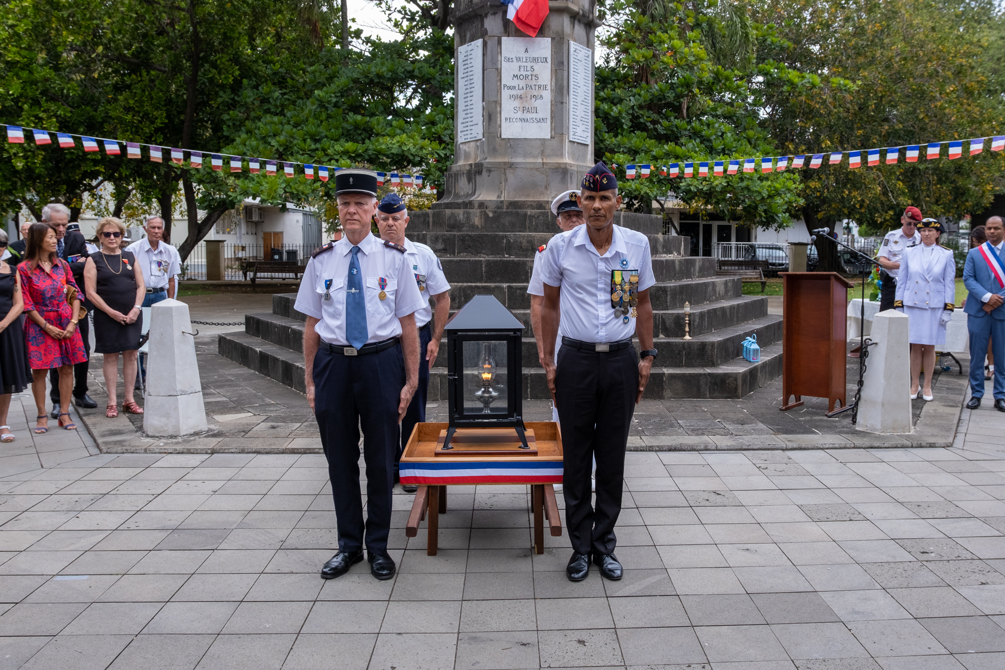 Saint-Paul accueille une belle cérémonie de passage de la Flamme du Soldat Inconnu le lundi 7 novembre 2022 au Jardin de la Liberté. Notre commune a la responsabilité de garder la Flamme toute cette nuit. C’est la seule ville de l’île à avoir ce privilège.