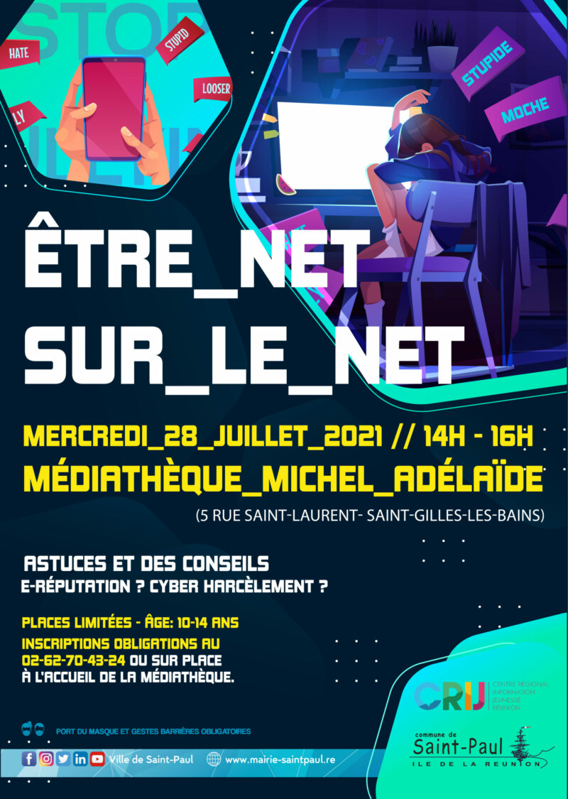 La Ville de Saint-Paul s’engage également contre le cyber-harcèlement. En témoigne l’événement intitulé « Être net sur le net » organisé par le Centre régional information et jeunesse en lien avec la commune, toujours à la médiathèque Michel-ADÉLAÏDE le mercredi 28 juillet, de 14 à 16 heures.