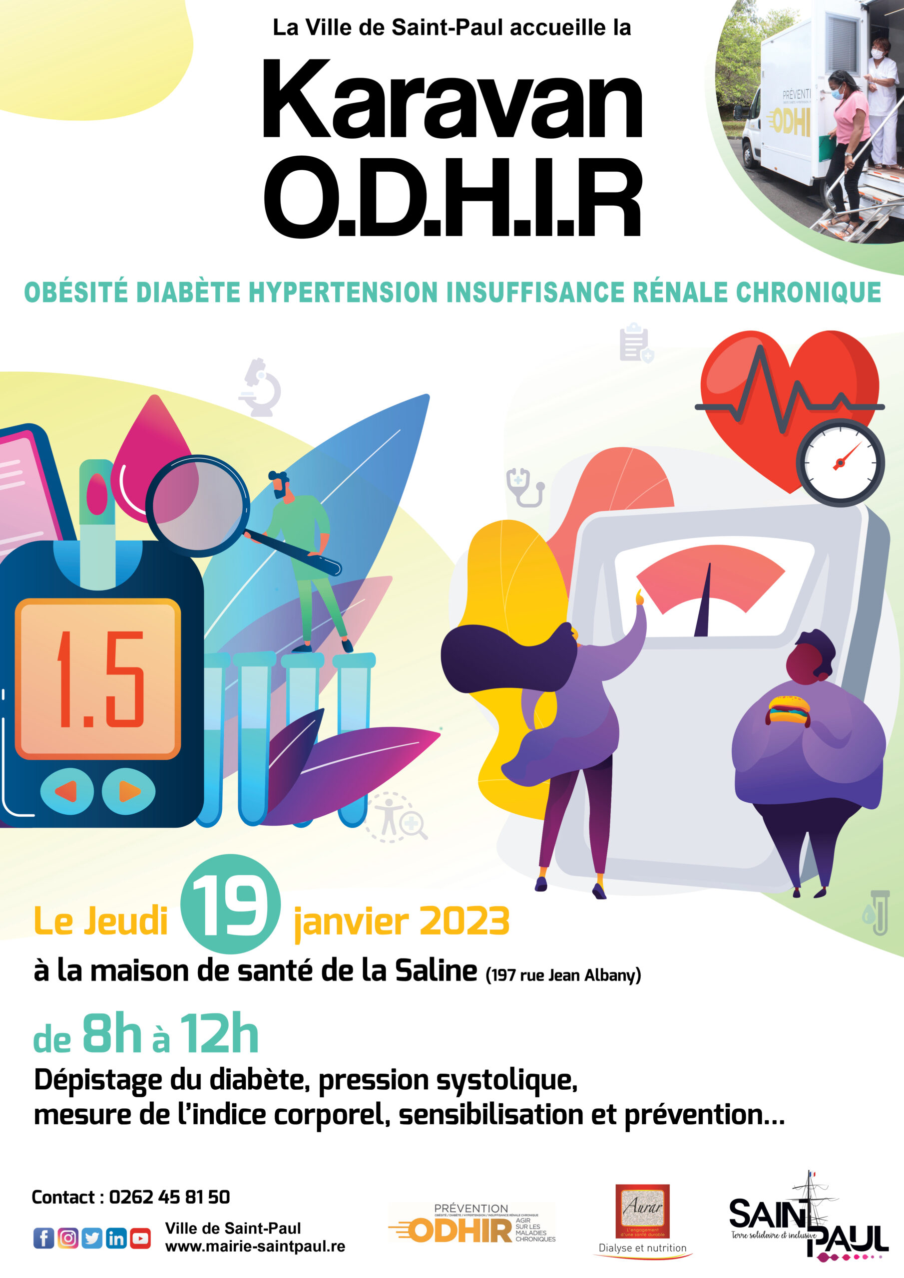 Cette opération organisée sur le territoire saint-paulois se déroulera en partenariat avec l’AURAR* grâce au passage de la Karavan ODHIR (obésité, diabète, hypertension ou encore insuffisance rénale chronique) ce 19 janvier. L’intérieur de ce véhicule est spécialement aménagé. Il s’agit d’un fourgon sanitaire doté d’équipements spécifiques.