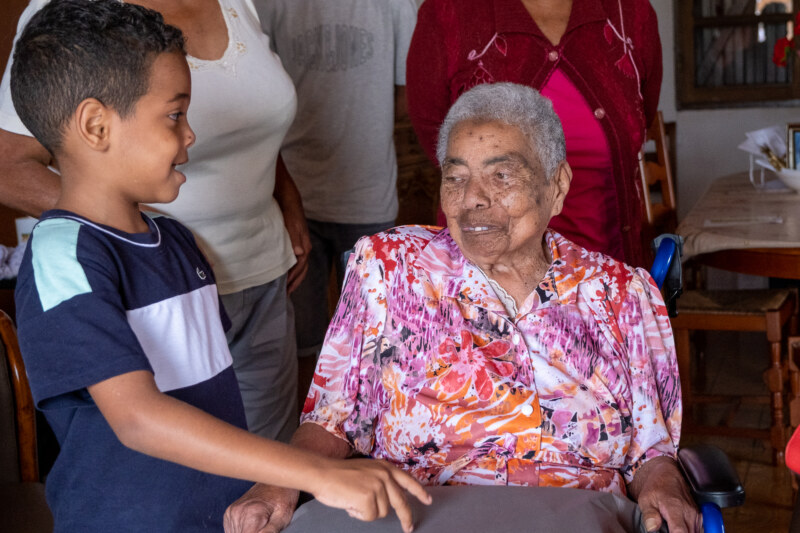 Suite à la fin de la Semaine Bleue, la Ville de Saint-Paul continue les visites de ses centenaires. C’est à Bois-de-Nèfles que Thérèse Ariçis CUVELIER, 100 ans, reçoit avec surprise la visite de l’Adjoint de quartier, Yann CRIGHTON.