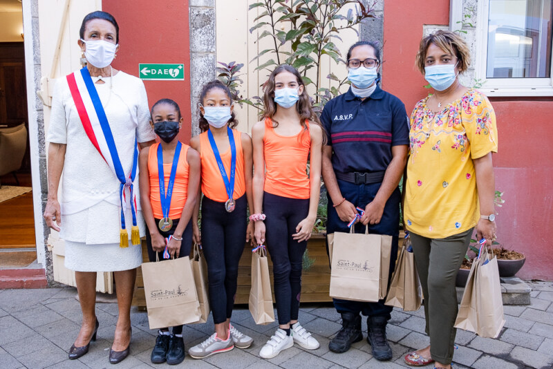 La Ville de Saint-Paul a l’honneur de recevoir trois jeunes gymnastes et trois championnes de La Réunion en triplette à l’Hôtel de Ville ce vendredi 18 juin 2021. De par leurs parcours remarquables, ces femmes brillent comme des étoiles parmi les nombreux talents de notre territoire. Elles ont été reçues par la Maire de la commune, Huguette BELLO, ainsi que par Emmanuel SÉRAPHIN, 1er adjoint et président du TCO, Patrick LEGROS, Délégué à la politique sportive, Jean-Noël JEAN-BAPTISTE, l’Adjoint du Guillaume, notamment Délégué au Sport.