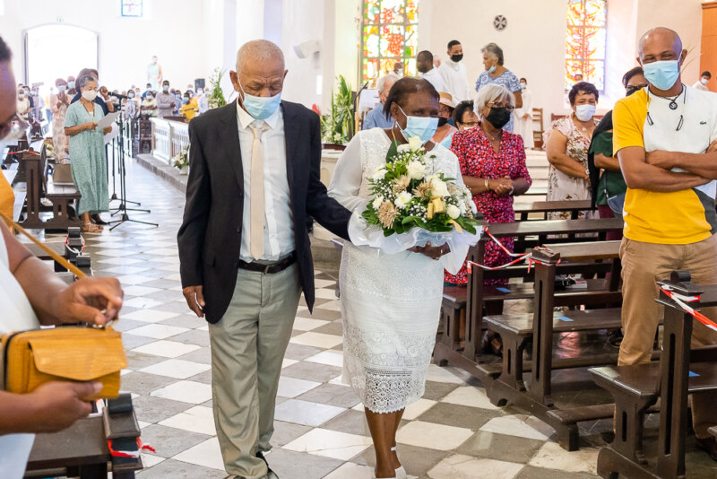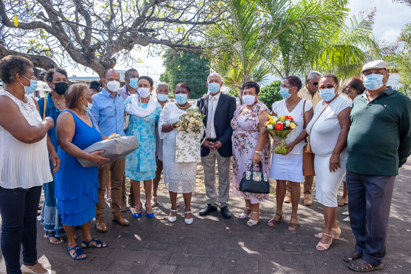 Quelques mois plus tard, Rubain, prend son courage à deux mains et fait sa demande en mariage. “Il a écrit sa lettre puis l’a envoyée par La Poste, elle était adressée à mes parents”. Trop anxieuse pour la lire, c’est sa soeur Josiane qui a lu la missive à ses parents. “Mon père a donné sa bénédiction et nous nous sommes mariés le 6 juin 1971 à l’Eglise de Bois-de-Nèfles. Aujourd’hui, Marie-Anick et Rubain vivent heureux entourés de leurs 3 enfants et 3 petits-enfants. L’ancienne employée de maison de 68 ans et l’ex-cultivateur de cannes à sucre et de géranium de 70 ans ont vécu ce dimanche une véritable surprise. “C’était une surprise de mes enfants, de mes petits-enfants et la complicité d’autres personnes. J’ai pleuré lorsque j’ai réalisé tous les efforts qu’ils avaient fournis pour rendre unique cette journée. Nous avons renouvelé nos voeux ce dimanche 6 juin à l’Eglise de la Conversion à Saint-Paul. Parmi les personnes présentes la maire de Saint-Paul, Huguette BELLO et Emmanuel SERAPHIN, 1er adjoint et président du TCO sont venus féliciter Marie-Anick Floriant, la déléguée à la lutte contre l’habitat insalubre à Saint-Paul et son époux. Après des photos immortalisées à la Grotte du Peuplement, les enfants ont préparé un repas surprise pour les époux à leur domicile. La maison a été décorée en leur absence pour garantir la surprise jusqu’au bout ! Nous leur souhaitons encore quelques années de bonheur en famille entourés de leurs proches.