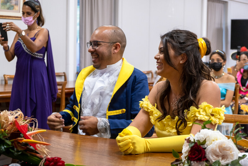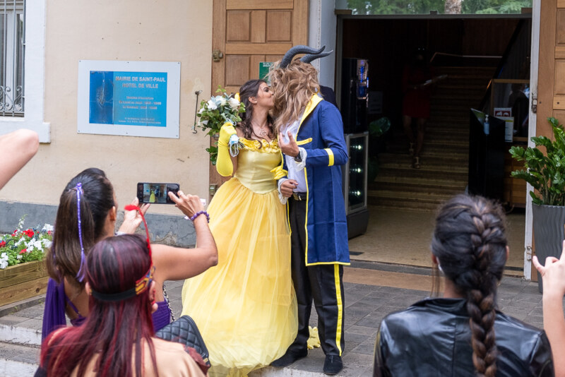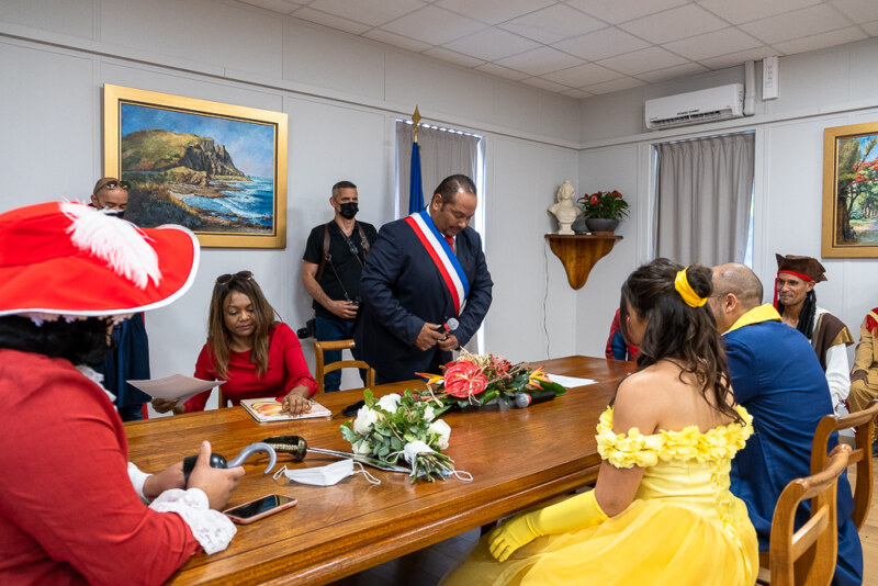 “Histoire éternelle, qu’on ne croit jamais, De deux inconnus, qu’un geste imprévu, rapproche en secret…”La Belle et la Bête se sont dits “oui” ce jeudi 15 juillet en mairie centrale de Saint-Paul ! Pour célébrer ce jour, ils étaient accompagnés de Jasmine, du capitaine Jack Sparrow, Spiderman, Pocahontas ou encore Woody de Toy Story ! Yann CRIGHTON, adjoint, a scellé leur union d’une bien belle des façons. Nous leur souhaitons un bonheur éternel.