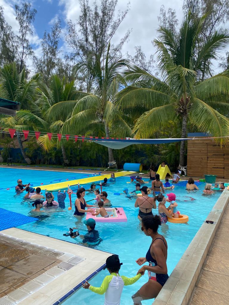 Développer des actions transversales autour de l’accompagnement à la parentalité chez les jeunes parents est un enjeu majeur pour la Ville de Saint-Paul, terre solidaire et inclusive. Dans ce cadre, le Service Petite Enfance et Parentalité, en partenariat avec la Direction des Sports des aires nautiques, ont mis en place plusieurs ateliers aquatiques dans les piscines. Dédiées aux parents et à leur(s) enfant(s) âgé(s) entre 7 mois et 3 ans, plusieurs animations ont ainsi été proposées ce dimanche 11 décembre de 10h à 12h à la piscine des Aquanautes. Massages, atelier aux goûts, prévention solaire, café parent… Cette belle matinée qui a rassemblé près de 80 familles s’est déroulée en présence de l’élue Virginie SALLÉ. Cette animation proposée par la Ville de Saint-Paul était entièrement gratuite ! Retour en images.