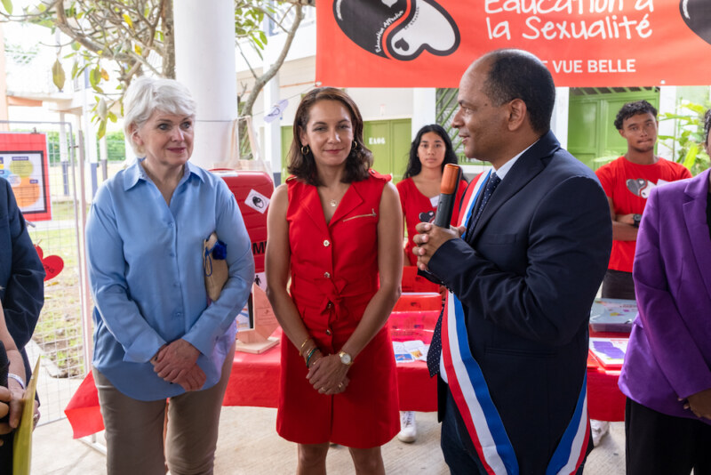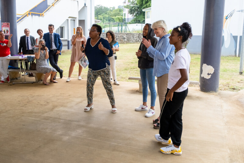 Durant ses deux jours à La Réunion, les questions de l’égalité, de la lutte contre le harcèlement et les violences conjugales et intrafamiliales seront abordées sous tous les angles en évoquant notamment l’éducation à la sexualité et à la vie affective. Pour l’occasion, l’établissement saint-paulois s’est vu remettre le label Egalité filles garçons, de niveau 3. Le niveau 3 atteste d’une expertise partagée par l’ensemble de la communauté éducative. Le niveau 1 reconnait un engagement de l’établissement scolaire et le niveau 2 marque l’approfondissement dans la démarche. Pour Isabelle Lonvis-Rome, sa venue dans un établissement scolaire n’est pas anodine mais marque la ferme attention de mettre en place un plan de sensibilisation et de prévention contre les violences sexuelles dans les écoles “Il faut commencer très tôt à éduquer, à faire de la prévention des violences sexuelles si on veut diminuer, sensiblement à terme, les violences faites aux femmes”, précise la Ministre qui a assisté à un spectacle des élèves avec Delixia PERRINE “Panser l’impensable”. En 2021, 180 lycéens de Vue Belle et de Trois Bassins ont été invités à devenir des acteurs de la prévention grâce à la compagnie de danse professionnelle saint-pauloise Escaladanse et leur projet « Prévenir l’ImpAnsable ». Cette pièce symboliquement forte s’inspire de la vie de Jacqueline Sauvage.