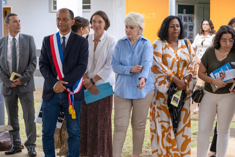 Pour entamer sa première journée de visite dans notre île, Isabelle LONVIS-ROME, Ministre déléguée auprès de la Première Ministre, chargée de l’Egalité entre les femmes et les hommes, de la Diversité et de l’Egalité des chances s’est rendue ce vendredi 31 mars au lycée professionnel de Vue Belle à la Saline-les-Hauts de Saint-Paul en présence du Maire de la Ville, Emmanuel SÉRAPHIN, du Préfet de La Réunion, Jérôme FILIPPINI, du Président du Département, Cyrille MELCHIOR, de la secrétaire générale de l’UFR, Evelyne CORBIÈRE et de la rectrice de l’Académie de La Réunion, Chantal MANÈS-BONNISSEAU.