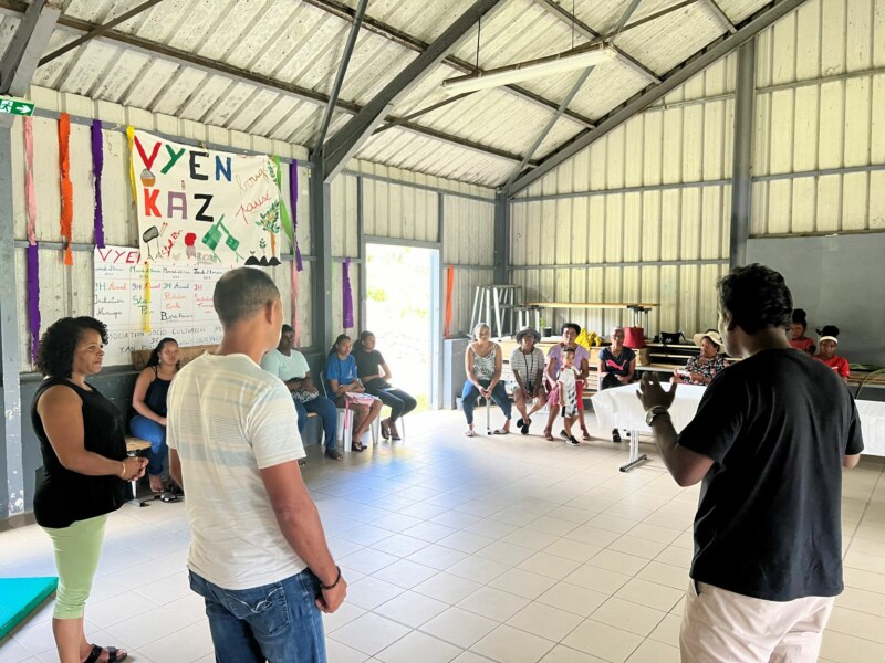 L’objectif de ces demi-journées de « Vyin bougé case pausé » était de proposer des activités variées telles que l’initiation au moringue, au steel pan, boxe française, atelier secourisme de la protection civile. Également au programme, des activités artisanales et naturelles comme l’initiation au tressage de feuilles de coco.